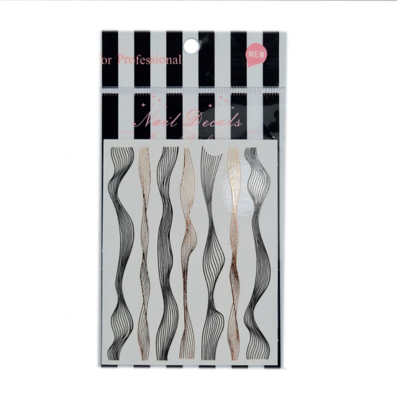 Наклейка для манікюру "Чорна і мідна хвиля", металізована